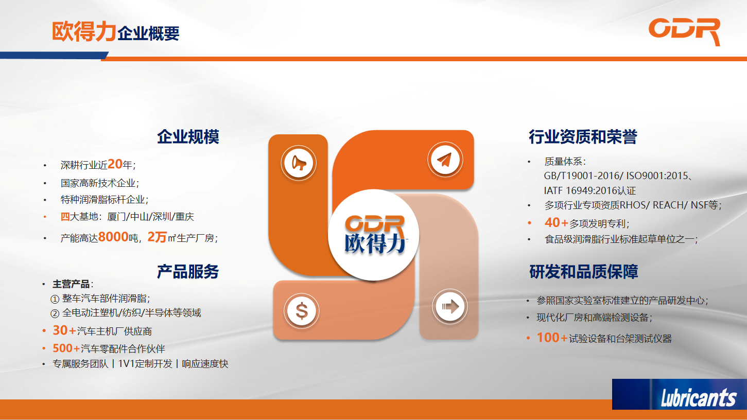茄子视频黄色APP免费下载欧德力(中山市)润滑科技有限公司坐落于中山市民众镇,处于粤港澳大湾区核心地带。由欧德力(厦门)润滑材料科技有限公司与中山市茄子视频黄色APP免费下载新材料科技有限公司联合投资创建,在汽车特种茄子视频污版APP下载、全电注塑机茄子视频污版APP下载、纺织机械茄子视频污版APP下载等领域深入耕耘,成绩斐然。